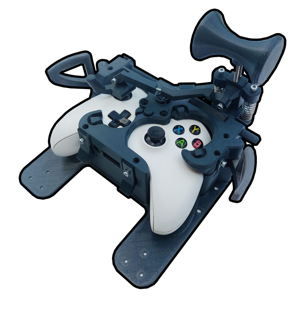 The current version of the add-on is a 3D printed shell that snaps onto a gaming controller and links together its function to make it usable for the racing game called Forza. By mechanically combining the functions of accelerating, reversing, and turning into one new pedal, all functions of Forza become usable with just one hand, not needing fingers.