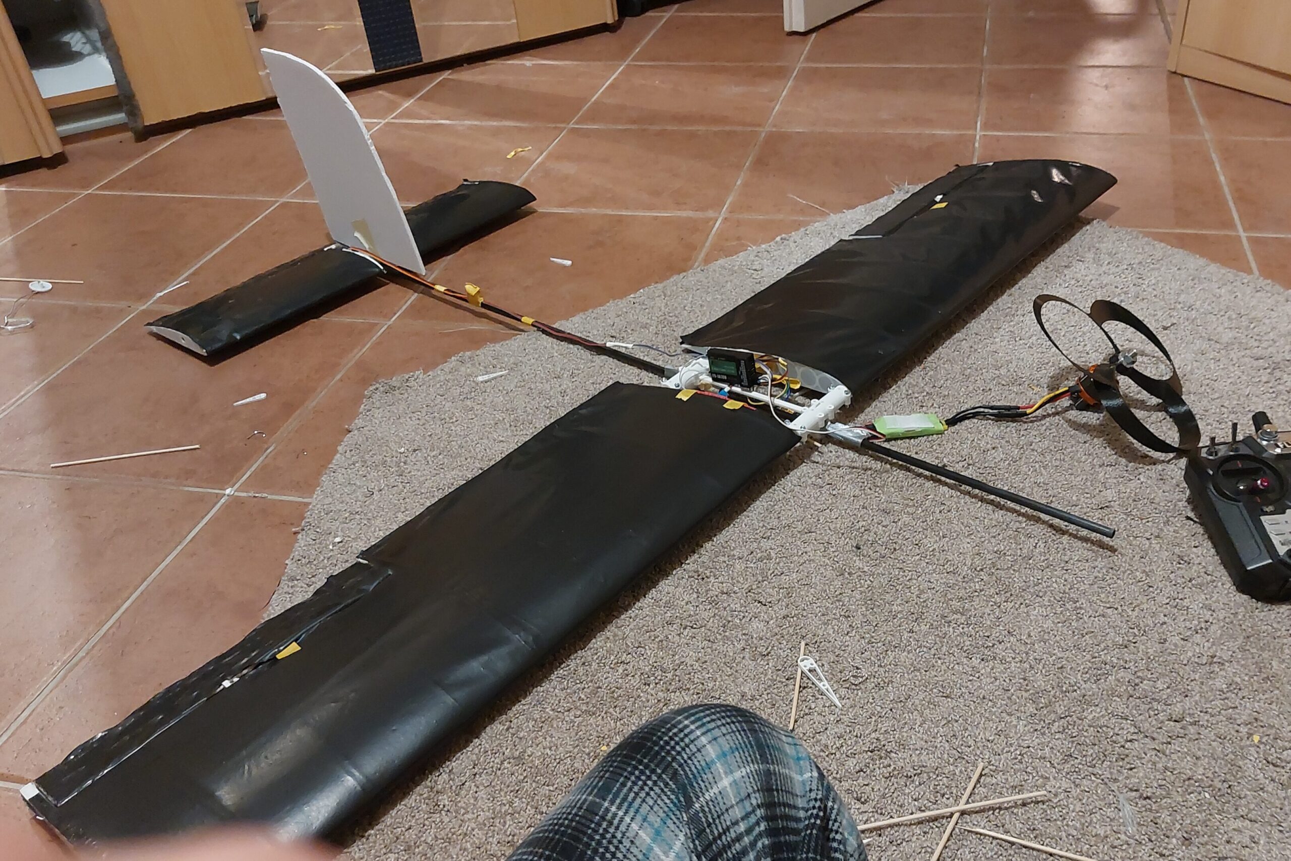V6 was my 2nd fully self-designed RC plane. Instead of Monokote, tarps remaining from the 2024 Danube floods were used for covering. It successfully flew several times.