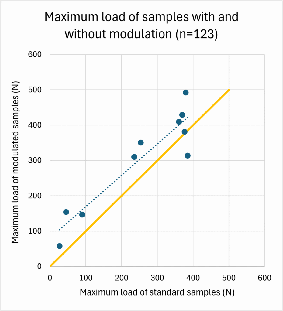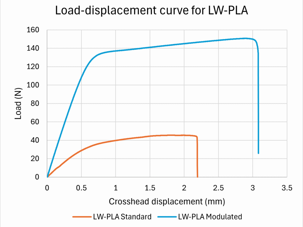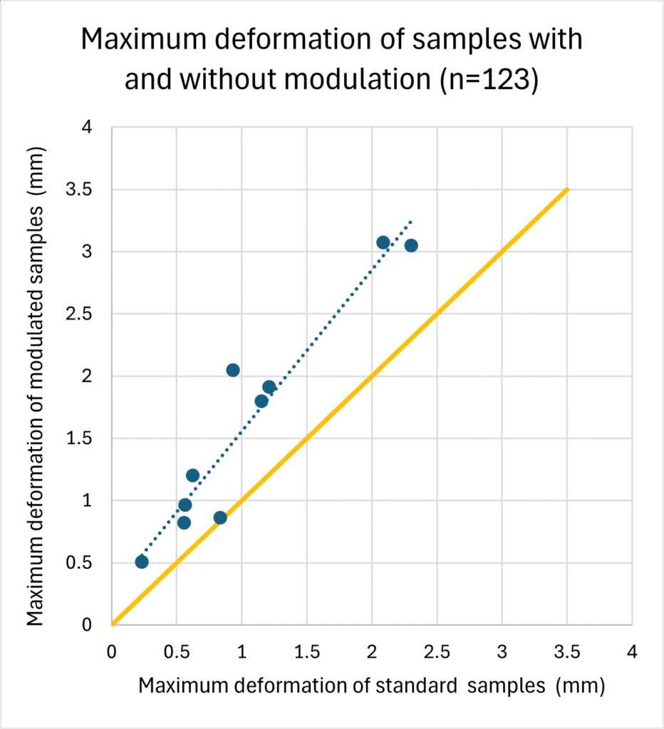 The main limitation is that the technique increases the print time of parts. Control tests where the print speed for unmodulated parts was decreased to the same speed showed that the mechanical improvements were not attributable to the slower printing.