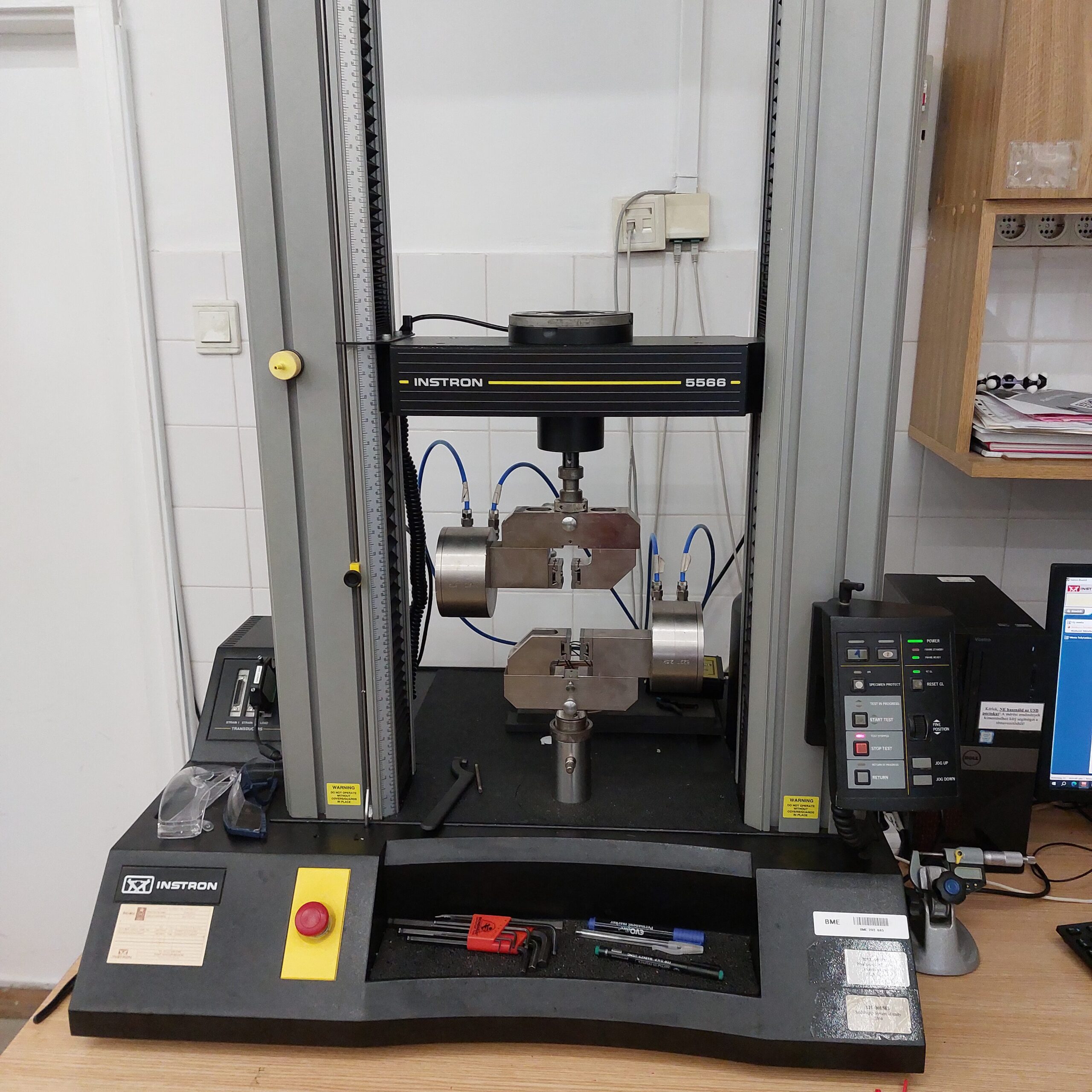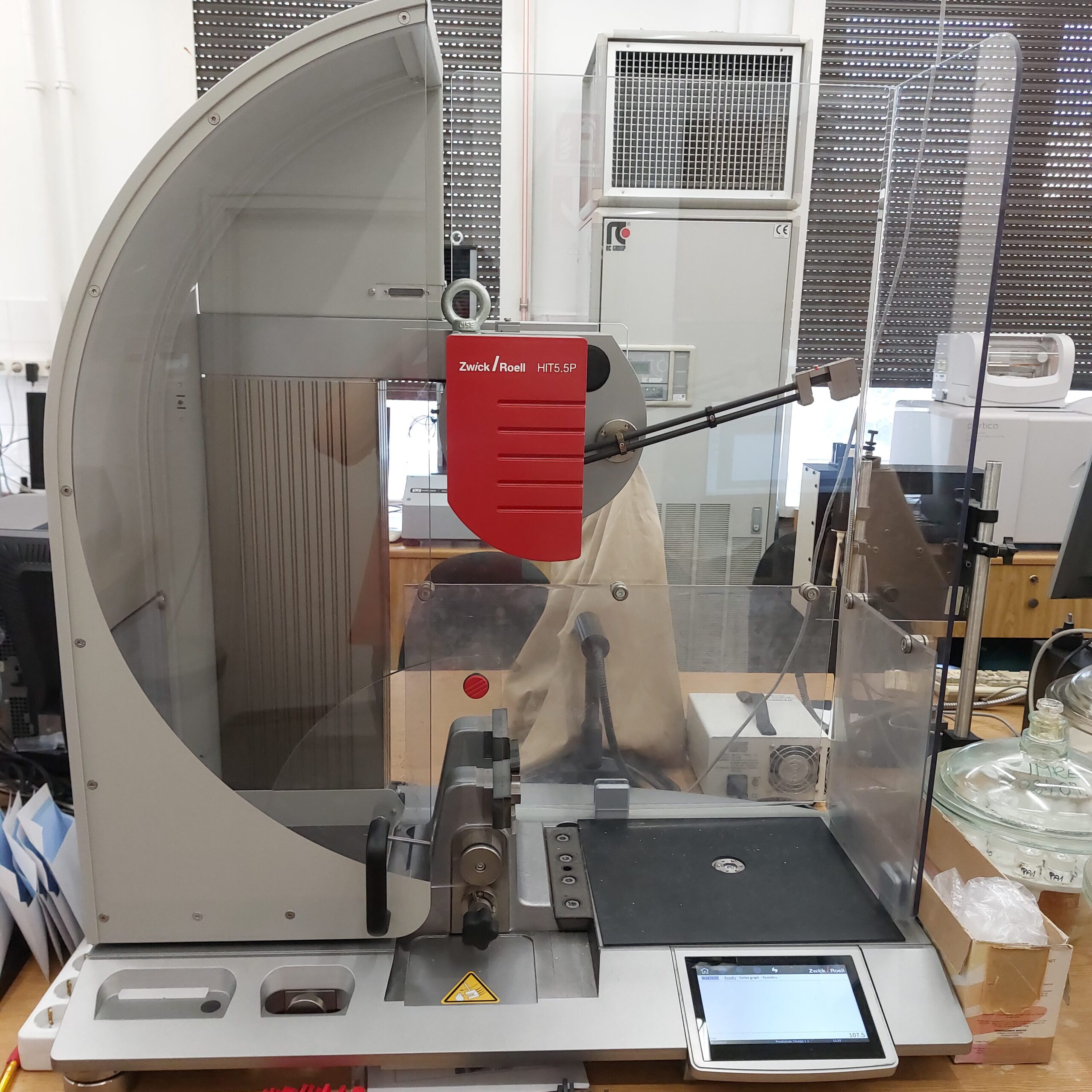 Professional apparatuses used for testing (UTM left, Charpy Impact Test right).