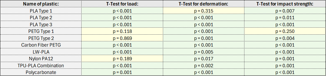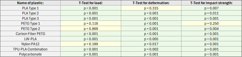 For testing, ISO 527 and ISO 179-1 samples (Figure 2) from 11 plastics were tested on a universal test machine and Charpy impact test machine. Preliminary tests were performed on a home-made apparatus, after which tests were performed on a university’s professional, calibrated equipment. For standardization purposes, this poster exclusively references measurements made on the professional equipment. 281 successful tests were performed and analyzed (123 pcs ISO 527, 158 pcs ISO 179-1); the results from one plastic (PLA Type 4) were lost due a failed export of measurements from the test machine